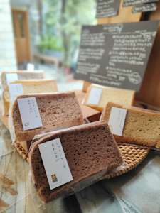 この時期は、果物や野菜、チョコレートにナッツ、ほかにもいろいろ!!! シフォンケーキに盛り込みたいものがいっぱいです。 洋梨の甘みや形、柿のオレンジ色、安納芋の焼き芋のねっとり感、胡桃の苦み、ほうじ茶の風味、有機人参の元気や感じ。