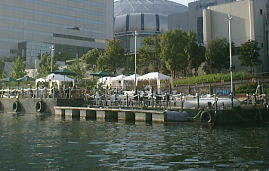 なんと!!!大阪で、それも大阪ドーム横、尻無川に水上カフェ出現。 川の上でお茶できるカフェが特設的というか実験的?に設置されたのよ。 期間が2週間と非常に短いので早く行かなきゃ終わっちゃう。 17日(金)まで。 急げーー!! 昼間、ボケーーっと優雅に時を過ごしたいなら絶対にお勧め。 だって水の上でのんびりできるのよ。 ここはアムステルダムか?! 人が少ないからゆーーーーっくり居座っても全然問題なし。 この水上カフェ、えっと名前は"SUN SET 37" プカプカ浮いてるので少し揺れたり、風が心地よく吹いてきたり、時折通る船を見たり、太陽の光が川面に映りこんでいるのを無心で眺めてみたりand so on. いけてるカフェにちょっと飽きたら秋空の下、ゆっくりのんびり水上でカフェで過ごすのって、どう? 丁度いい天気だもん、外でなきゃ。