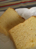 蜂蜜を沢山もらったので”純はちみつシフォン”を作った。 レシピ通りにつくったらちょっと水っぽくなってしもた。 なんでだろ〜? うーん、たぶん使った蜂蜜がねっとり系じゃなくって、とってもとってもサラサラしたさっぱり系だったからだろうね。 ってことでサラサラ系の蜂蜜を使う場合は水の量をぐぐぐーーーーーんっと減らした方がよさそ〜。 次この蜂蜜で作る時は蜂蜜40gにお湯を足して130ccで挑戦だ〜!!