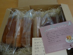 横浜シフォンさんで6個入りのカットシフォンケーキをネットで購入。 おまけに米粉の抹茶シフォンケーキまでついてきた♪ ラッキ〜! きれいに包装されてて丁寧さ漂う。 チョコレートシフォンケーキとバナナのシフォンケーキをさっそく頂きっ!