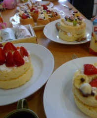 子供シフォンケーキ教室用に卵シフォンケーキで10cm型シフォンと紙コップシフォンを作りました。 10cm型かわいぃ〜。 コロンとしてて可愛さ半端ございません、やばいです! それをスライスし、年中さんの女の子達3人にデコしてもらいました。 デコレーションする材料は同じフルーツやお菓子なのに、みなさんそれぞれ個性的! 残った卵黄のクッキーも成形してもらい、チョコペンでデコしてもらいました。 これまた子それぞれ。面白いです。