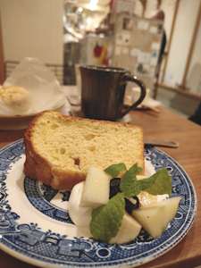 大阪天満宮近くの あんず舎さんで、かぼすシフォンケーキ。 爽やかなかぼすの風味が生地いっぱいに広がっていました。